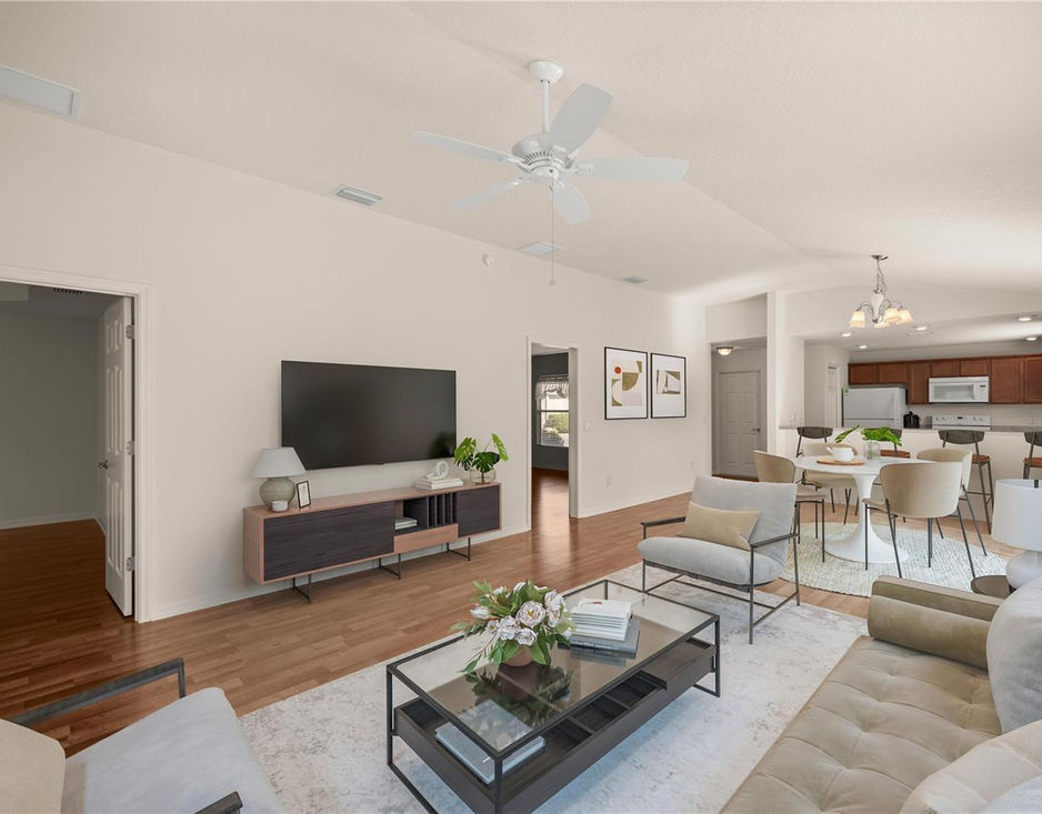This well-maintained two-bedroom, two-bath Durham model in Montbrook Villa offers a low-maintenance lifestyle with attractive rock landscaping and thoughtful upgrades throughout. Inside, enjoy brand-new luxury vinyl plank flooring, a freshly painted interior, high ceilings, and a kitchen pantry that adds extra convenience. The bright and airy primary suite features a tray ceiling and a spacious walk-in closet. Step out to the enclosed lanai with pull-down shades—perfect for year-round relaxation—and take advantage of the generous outdoor living space. Located in The Villages, Florida, one of the most amenity-rich active adult communities in the country, this home offers a vibrant and highly engaged lifestyle just a short golf cart ride from everything the community has to offer. Conveniently located near 466A, restaurants and shopping, St. James Pool, Sterling Heights and Buttonwood Recreation Centers, and centrally positioned between Brownwood Town Square and Lake Sumter Landing. Several championship and executive golf courses are also nearby. Don't miss this opportunity, contact me today to schedule your private showing!